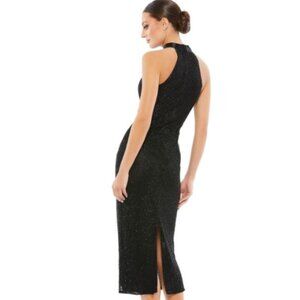 MAC DUGGAL 70110 EMEBELLISHED HALTER NECK BLACK SHEATH DRESS sz 8