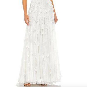 MAC DUGGAL 70275 FLORAL APPLIQUE EMBELLISHED LACE UP BACK FLOWEY WHITE GOWN sz 4