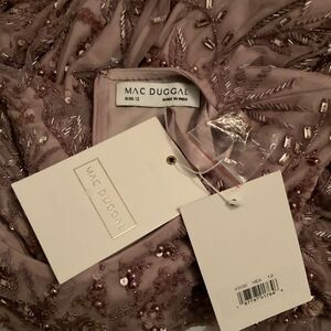 MAC DUGGAL Purple Puff Sleeve Embellished A Line Gown