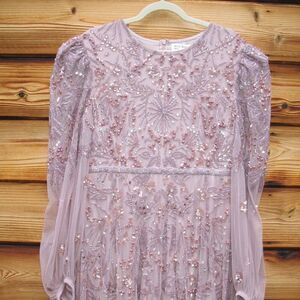 MAC DUGGAL $798 93930 Purple Puff Sleeve Embellished A Line Gown Dress