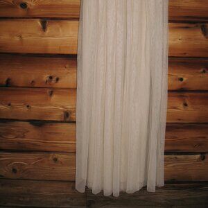 Partially lined bodice; fully lined skirt; sheer unlined sleeves