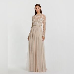 MAC DUGGAL 9132 Womens Embellished Illusion High Neck Long Sleeve Gown Dress