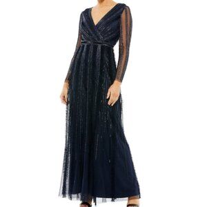 MAC DUGGAL 9145 ILLUSIONS A-LINE LONG SLEEVE MIDNIGHT GOWN 6