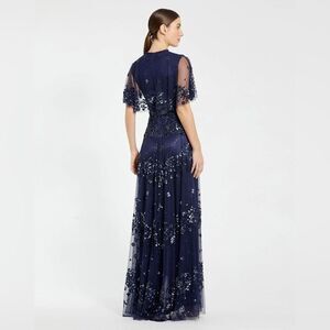 MAC DUGGAL 9192 Woman’s Blue Sequined High Neck Flutter Sleeve A Line Gown