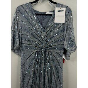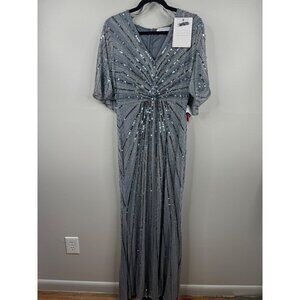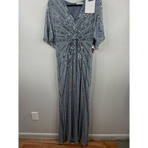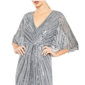 MAC DUGGAL 93583 Sequined V Neck Cape Sleeve Column Gown Slate Blue Size 8 NWT