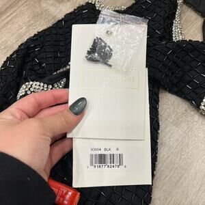 MAC DUGGAL 93664 Beaded Sleeveless Open Back Cut Out Gown Black Slit 8 NEW