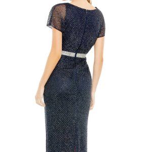MAC DUGGAL 93678 BEADED BUTTERFLY SLEEVE COLUMN MIDNIGHT NAVY GOWN sz 22