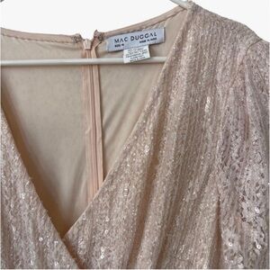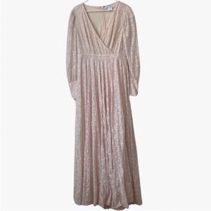 NEW MAC DUGGAL 93679 Long Sleeve A Line Maxi Gown Dress Pink Lace Sequin.