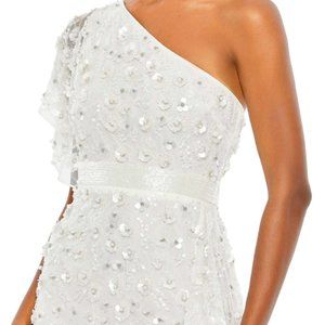 MAC DUGGAL 93687 ONE SHOULDER ASYMMETRICAL RUFFLE WHITE GOWN sz 16