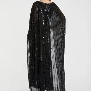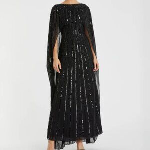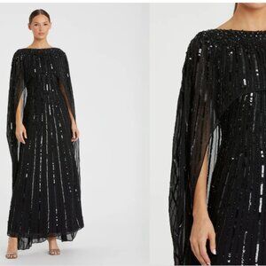 MAC DUGGAL 93869 EMBELLISHED BEADED COLUMN CAPE BLACK GOWN sz 14
