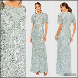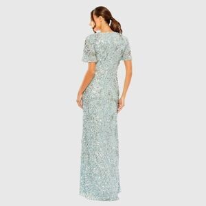MAC DUGGAL 93932 Blue Flutter Sleeve Sequin High Neck Gown
