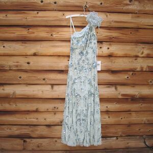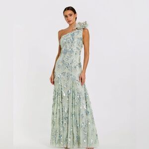 MAC DUGGAL 94151 Green Embellished One Shoulder Trumpet Gown with Flower