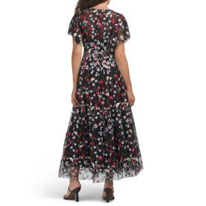 MAC DUGGAL BLACK MULTI Flutter Sleeve Embroidered Tea-length Dress