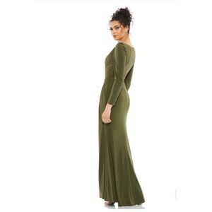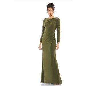 MAC DUGGAL BOAT NECK JERSEY GOWN W/ EMBELLISHED SHOULDER