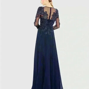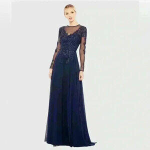 MAC DUGGAL Beaded Applique Illusion High Neck Gown Size 12 NWT Style 20385