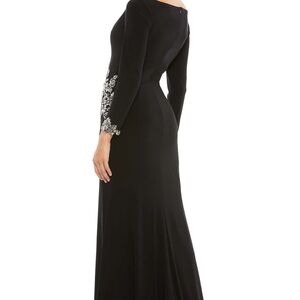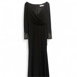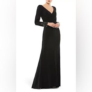 MAC DUGGAL Beaded Cuff Long Sleeve Wrap Front Black Maxi Gown Women’s 4 S