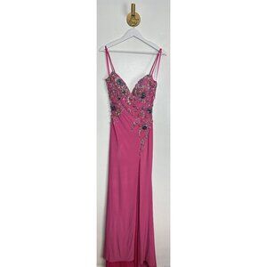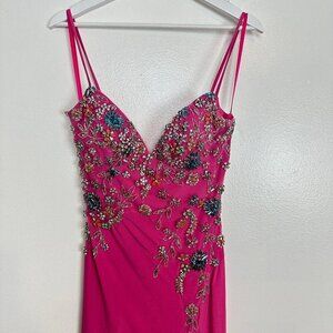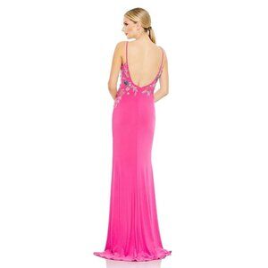 MAC DUGGAL Beaded Floral Detail Side Slit Gown in Candy Pink Size US 0