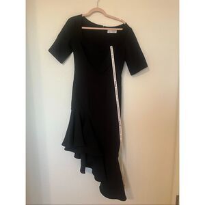 MAC DUGGAL Black Crepe 3/4 Sleeve Asymmetrical Hem Dress NEW NWT