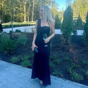 MAC DUGGAL Black One Shoulder Draped Trumpet Gown
