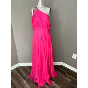 MAC DUGGAL DRAPED BEADED ONE SHOULDER FLOWY A LINE GOWN