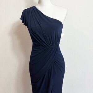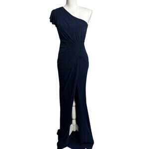 MAC DUGGAL DRAPED ONE-SHOULDER JERSEY GOWN IN COLOR MIDNIGHT SIZE 0 NEW