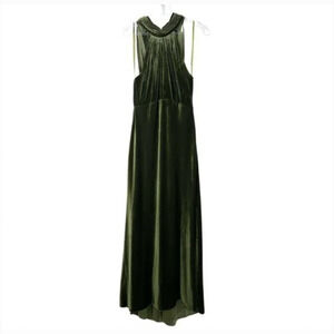 MAC DUGGAL Dress Size 0 Evening Gown Green NEW Halter Tie Front Slit Velvet