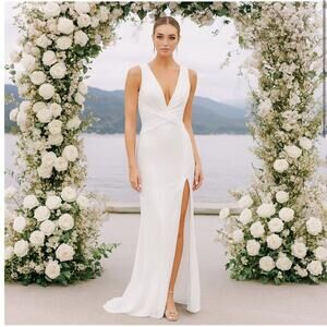 MAC DUGGAL Dress Size 12 Evening Gown Sequin White V Neck Wrap NEW