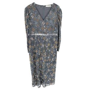MAC DUGGAL Dress Size 14 Evening Gown Sequin Midi Gray NEW NWOT Geometric