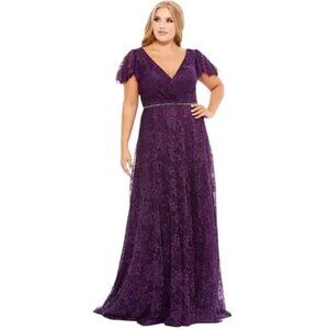 MAC DUGGAL Dress Size 18 Evening Gown Sequin Aubergine (Purple) Flutter Sleeve