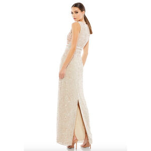 MAC DUGGAL Dress Size 2 Evening Gown Sequin Cream Sleeveless NEW Column