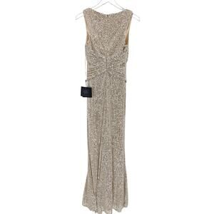 MAC DUGGAL Dress Size 2 Evening Gown Sequin NEW Cream V Neck Wrap