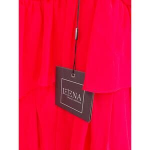 MAC DUGGAL Dress Size 2 NEW Red Mini Ruffles Puff Sleeve Tiered Tie Neck