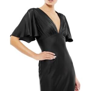 MAC DUGGAL Dress Size 4 Evening Gown NEW Black Flounce Sleeve Dress Satin V Neck