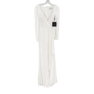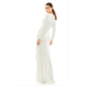 MAC DUGGAL Dress Size 4 Evening Gown Sequin Long Sleeve NEW White V Neck
