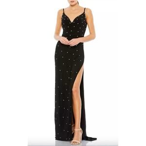 MAC DUGGAL Dress Size 6 Evening Gown NEW Black Rhinestone Embellished V-Neck