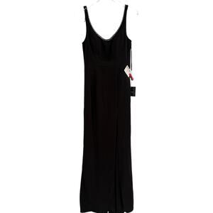 MAC DUGGAL Dress Size 6 NEW Evening Gown Black Sleeveless Crystal Scoop Neckline Column Gown with High Slit