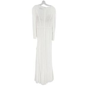 MAC DUGGAL Dress Size 8 Evening Gown Sequin Long Sleeve NEW White V Neck