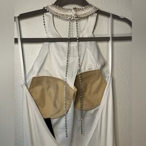 MAC DUGGAL Dress prom Evening Gown Beaded Halter White NEW Draped Rhinestone