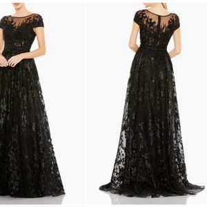 MAC DUGGAL EMBELLISHED FLORAL CAP SLEEVE A-LINE BLACK GOWN sz 16
