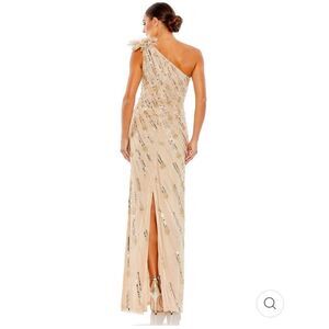 MAC DUGGAL EMBELLISHED FLORAL DETAIL ONE SHOULDER GOWN Nude/Gold size 14 New