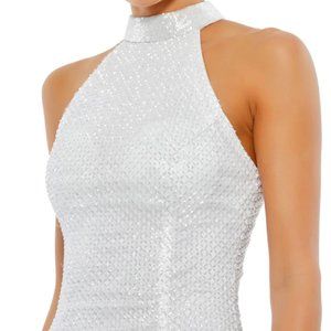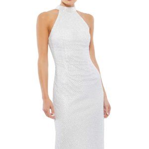 MAC DUGGAL EMBELLISHED HALTER NECK WHITE MIDI SHEaTH DRESS sz 4