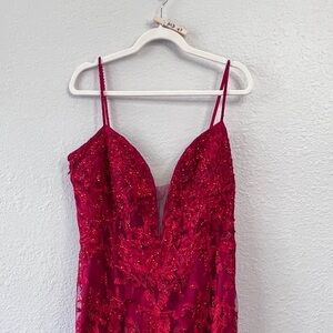 MAC DUGGAL EMBELLISHED PLUNGE NECK ILLUSION MERMAID RED GOWN SIZE 16