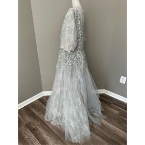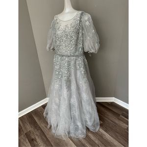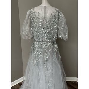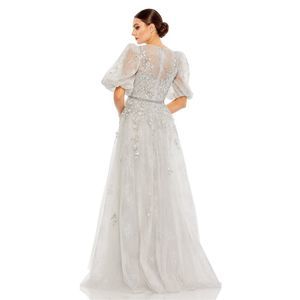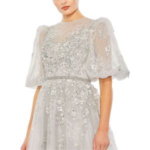 MAC DUGGAL EMBELLISHED PUFF SLEEVE A LINE GOWN