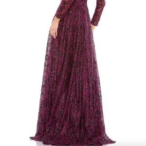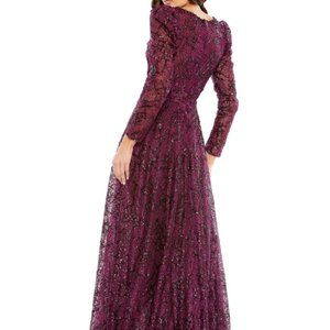 MAC DUGGAL EMBELLISHED V-NECK LONG SLEEVE A-LINE PLUM GOWN sz 12