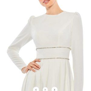 MAC DUGGAL EMPIRE WAIST LONG SLEEVE PLEATED WHITE GOWN sz 4