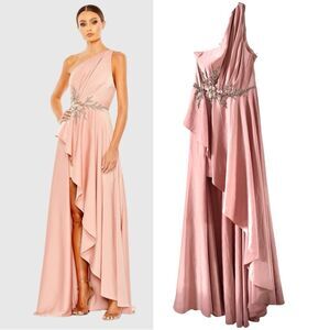 MAC DUGGAL Embellished One Shoulder Asymmetrical Gown in Rose 6 NWT