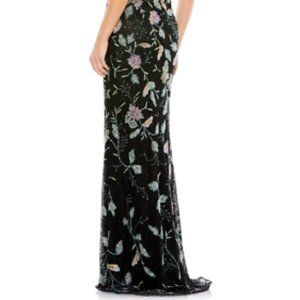 MAC DUGGAL FLORAL BAEDED TULLE COLUMN GOWN BLACK MULti GOWN sz 14