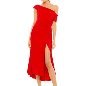 MAC DUGGAL FOLDOVER RUCHED ONE SHOULDER JERSEY MIDI RED DRESS sz 6