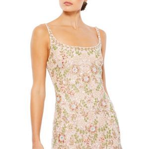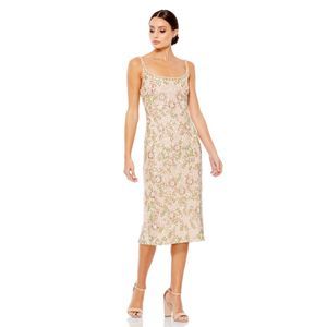 MAC DUGGAL Floral Beaded Midi Cocktail Dress