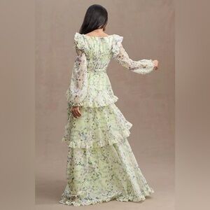 MAC DUGGAL Green Floral Chiffon Tiered Ruffle Dress 6